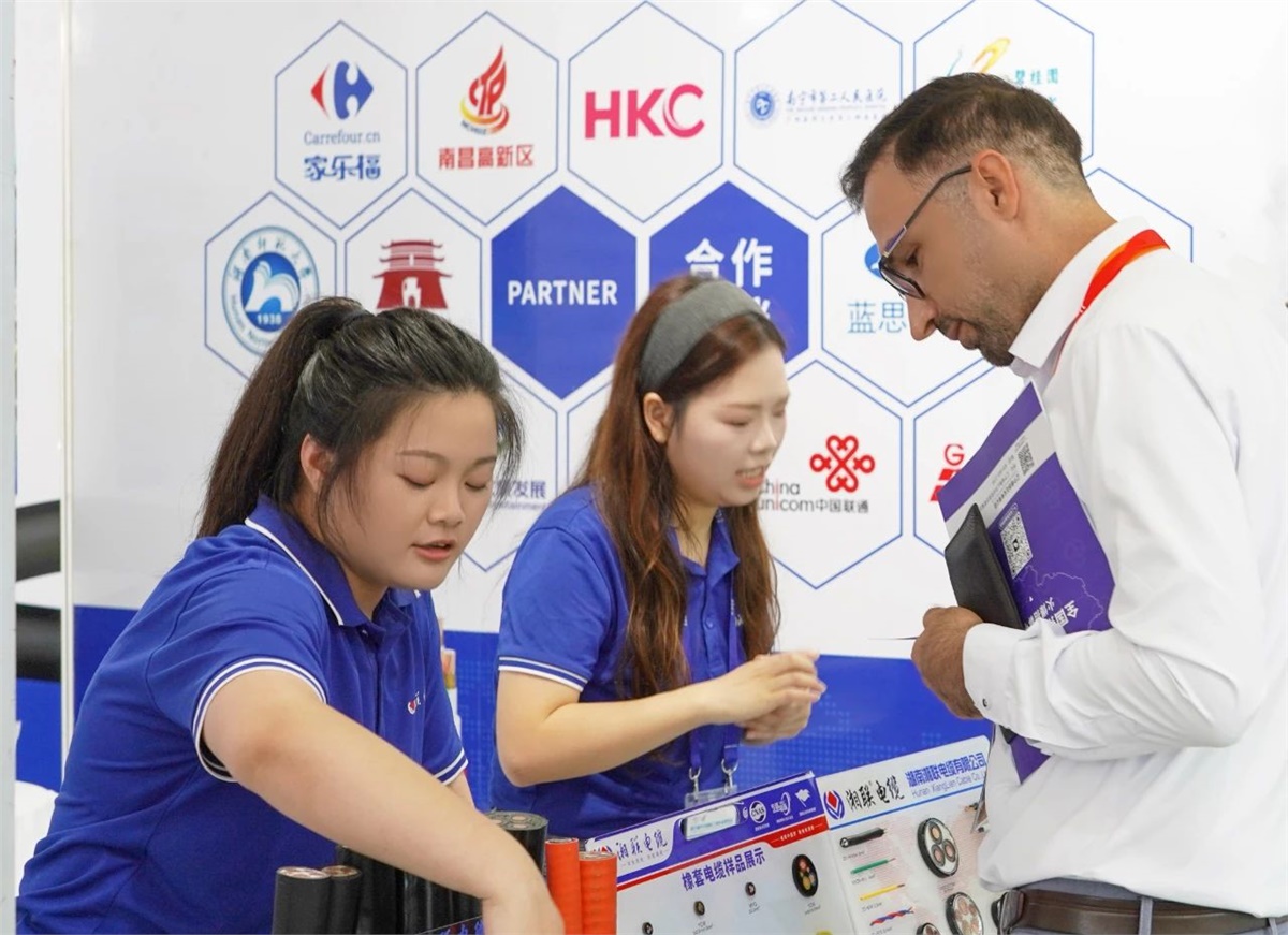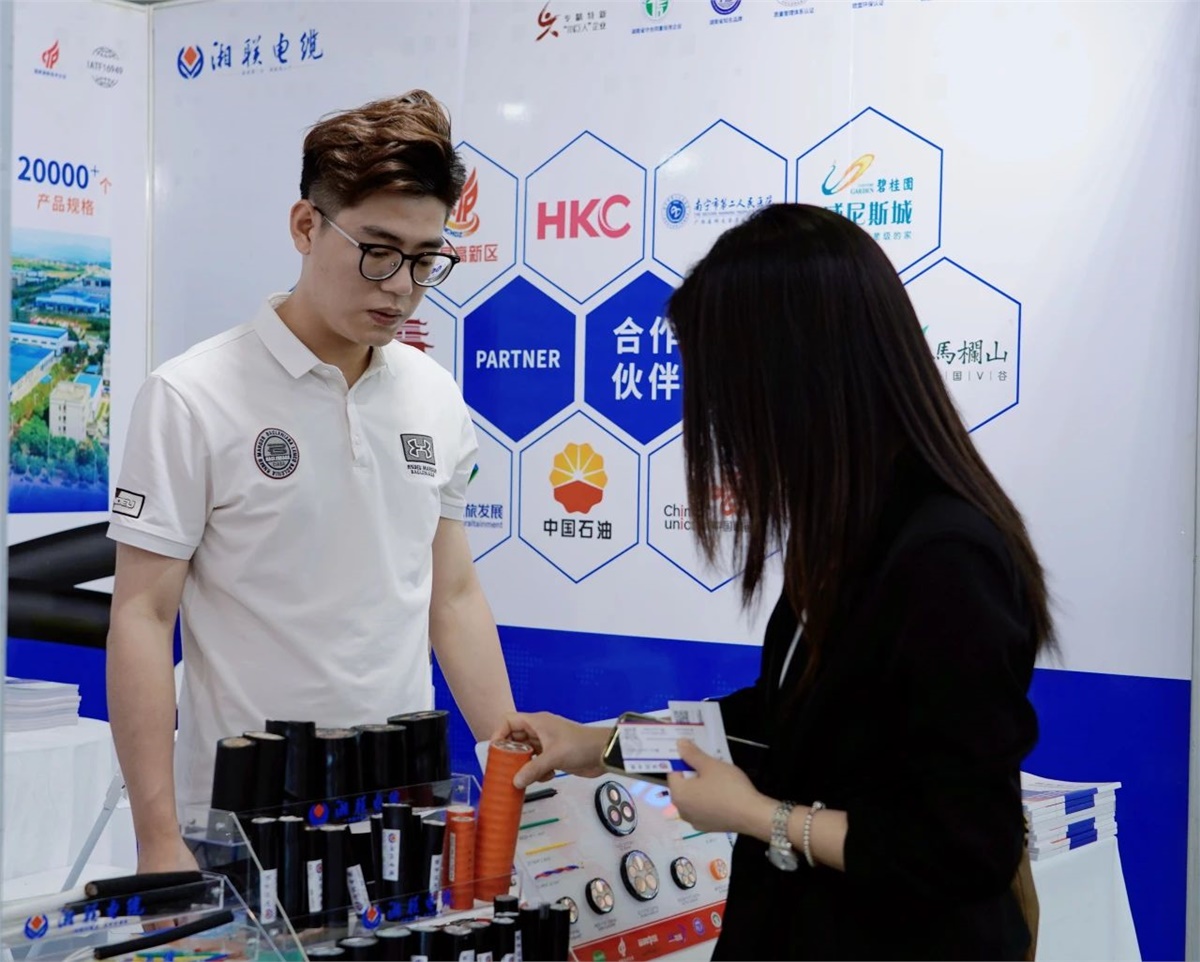 在展會現場,湘聯電纜圍繞光伏發電、新能源汽車、重型裝備等發展應用場景,與國內外參展觀眾就電線電纜的解決方案展開深入溝通與交流,生動呈現了公司產品在建筑工程、能源、電力等領域的廣泛應用,贏得了廣泛關注。