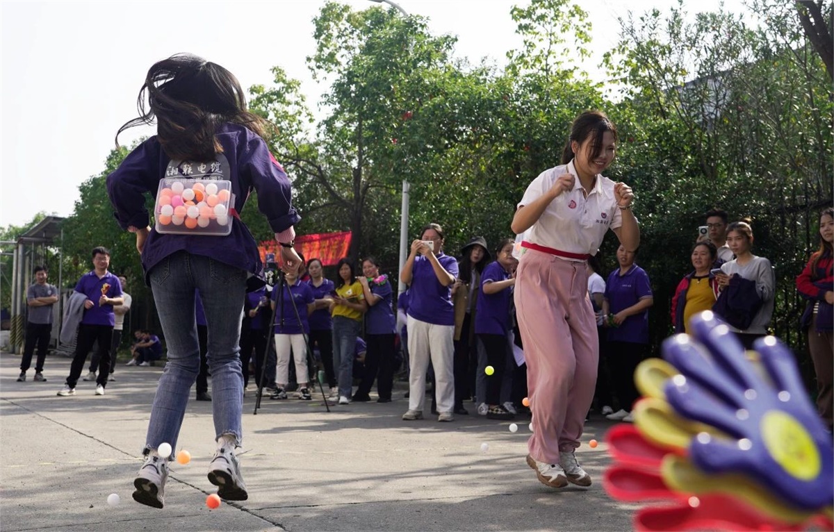 本屆運動會融合個人競技和團體競爭,設(shè)有無敵風火輪、摸石頭過河、投壺、公雞下蛋四個項目,運動形式活潑多樣,且兼顧技巧性,既能讓大家感受到運動的趣味性,又能增強大家的團隊協(xié)作精神。在運動場上,運動員們奮力拼搏,比技巧和默契,拼速度和協(xié)作,啦啦隊員們吶喊、歡呼,喝彩與掌聲此起彼伏,充分展現(xiàn)出湘聯(lián)電纜積極向上、朝氣蓬勃的風采。