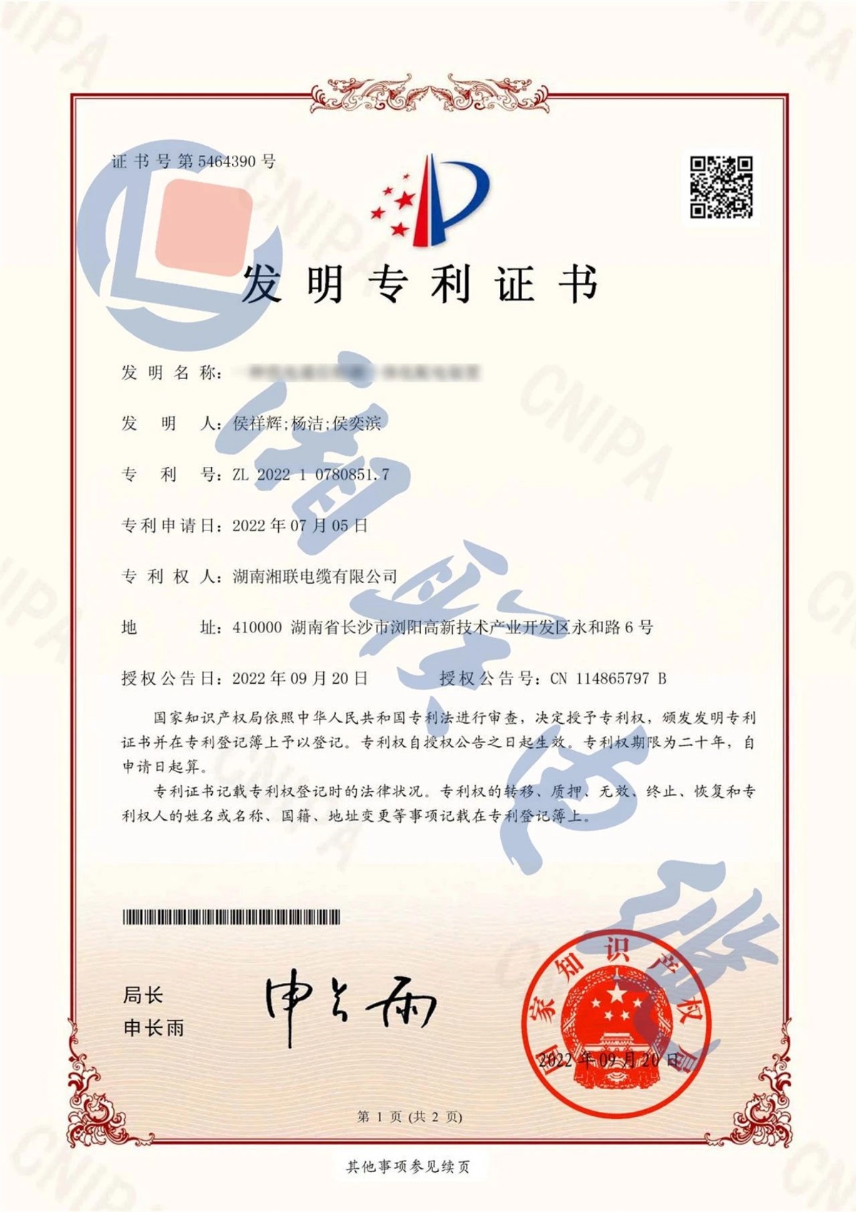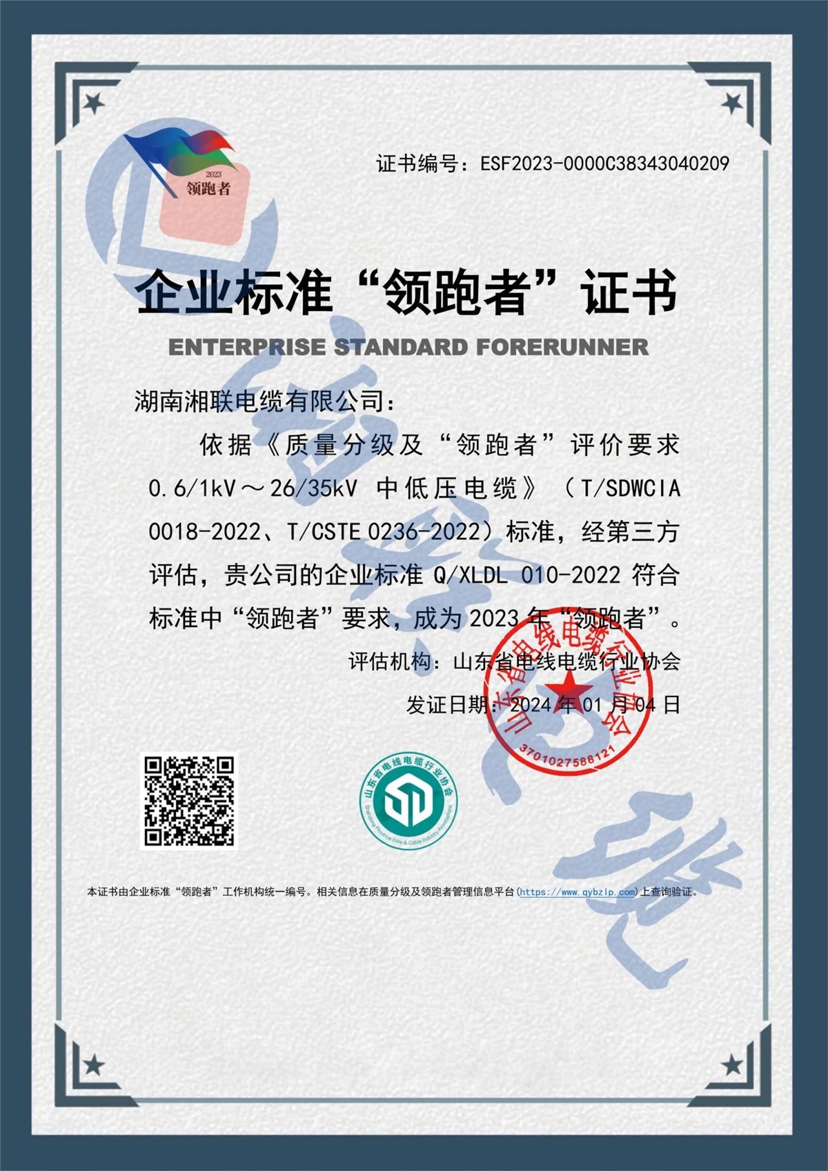 自湘聯電纜成立以來,公司研發(fā)了一系列具有自主產權的專利,累計申請專利50余項,多次參與編寫國家標準和團體標準,多款產品企業(yè)標準獲評國家“企業(yè)標準領跑者”稱號,企業(yè)的技術實力和核心競爭力不斷提升。2023年,公司被評為“湖南省省級企業(yè)技術中心”。